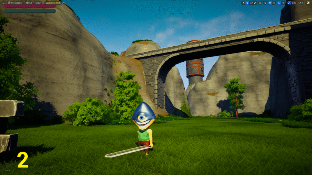 J’ai modélisé le personnage avec en référence le concept art d’un cyclope. Je l’ai ensuite riggé pour l’intégrer dans le moteur.